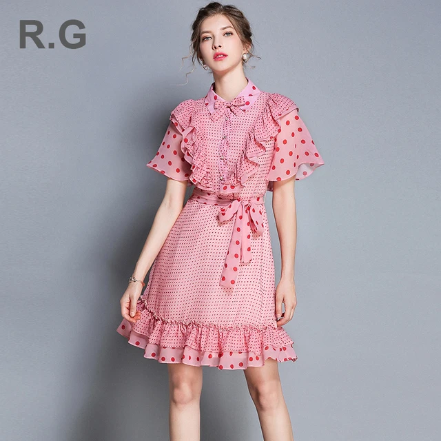 Rg Fashion Dot Printed Women Dress Princess Style Peter Pan Collar