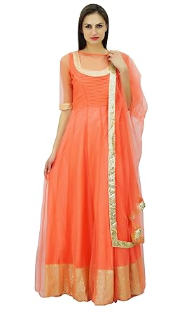 Atasi Womens Floor Length Princess Style Orange Dress Salwar Kameez